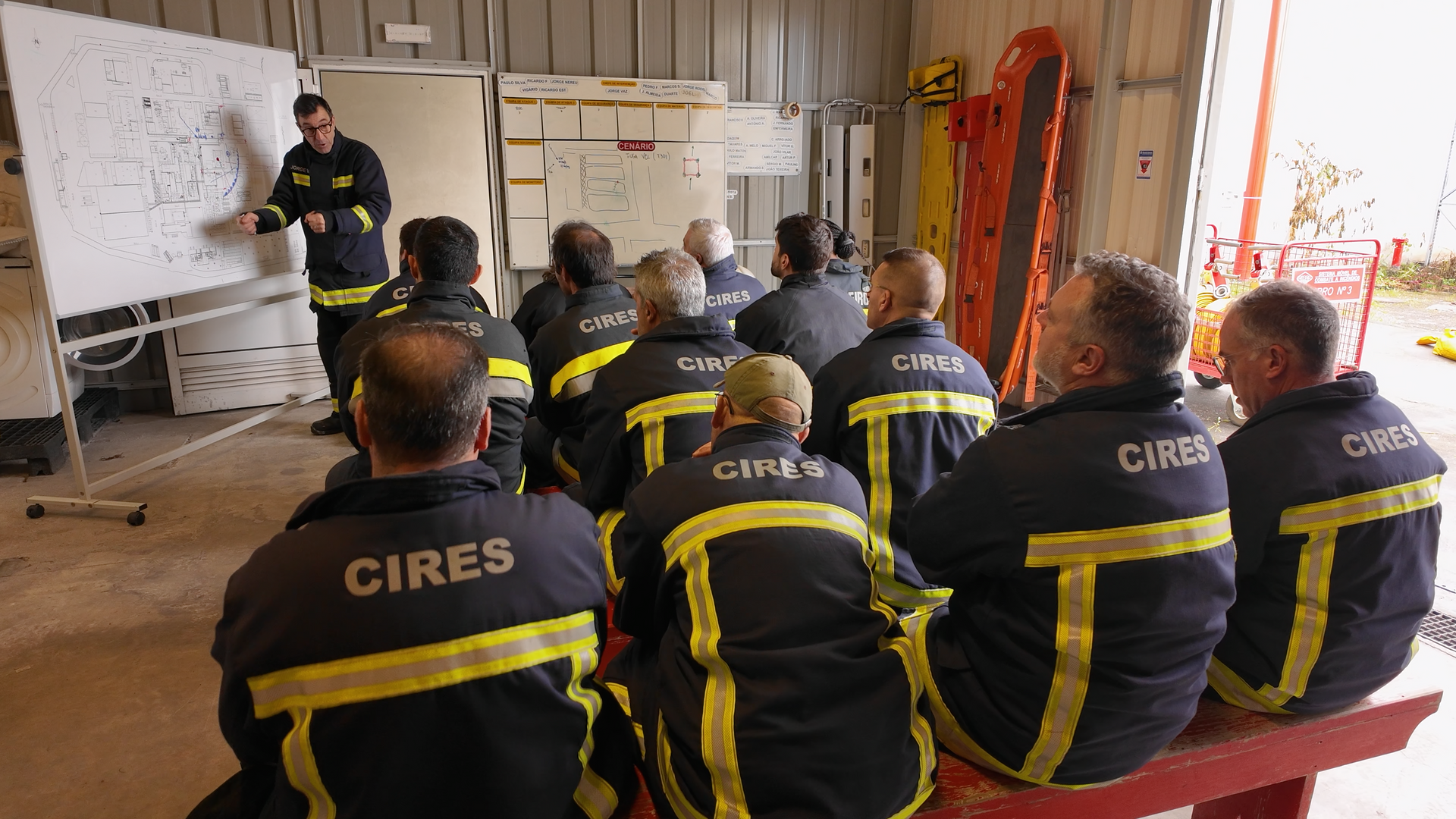 Um dos pilares desta formação é a estreita colaboração com os agentes de proteção civil locais. Nesta edição, a CIRES contou com a participação ativa de três elementos dos Bombeiros Voluntários de Estarreja, promovendo a troca de experiências e o alinhamento de protocolos entre a equipa interna e os socorristas externos.