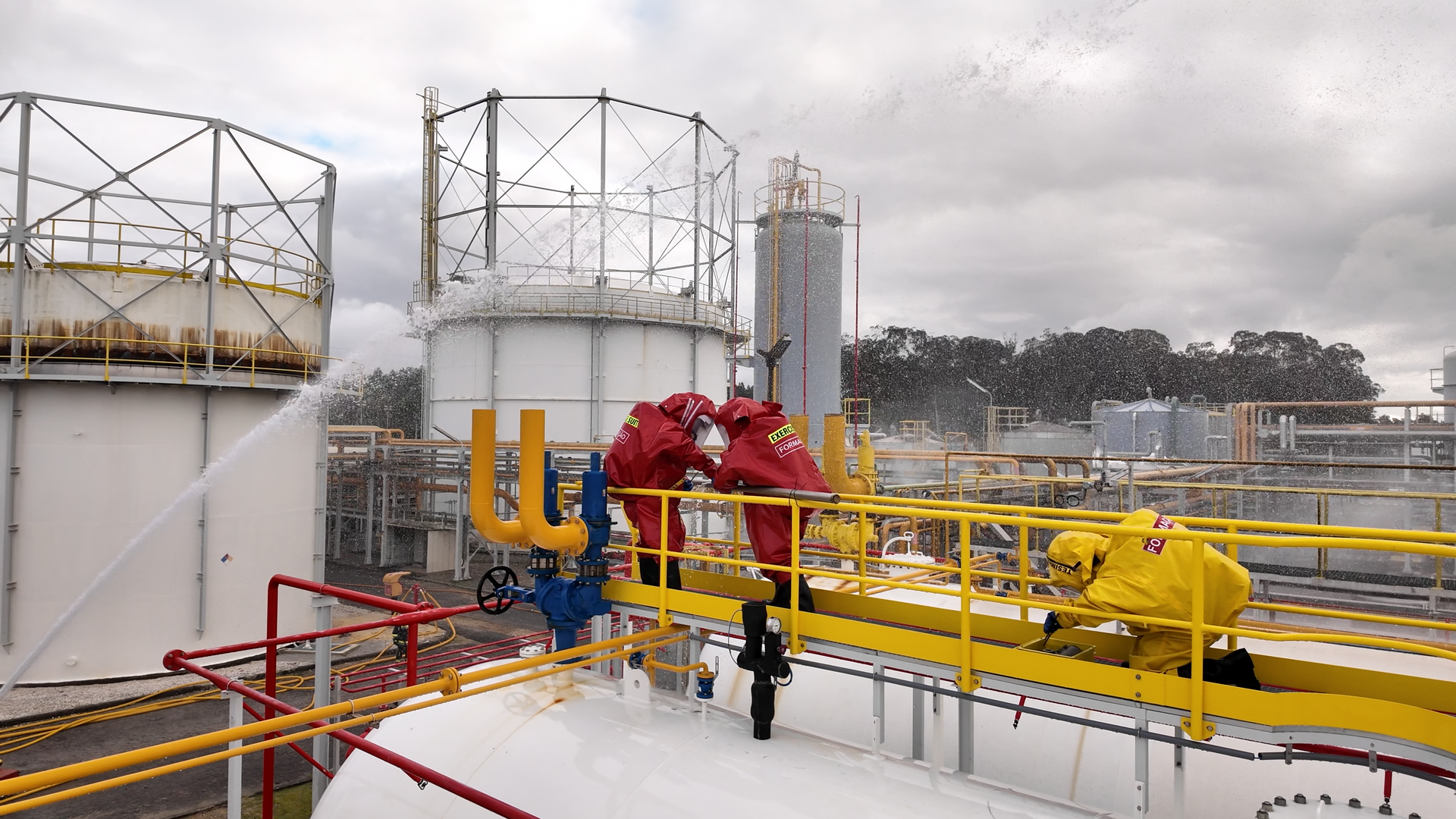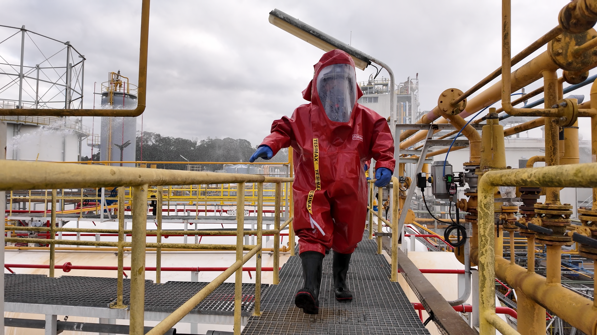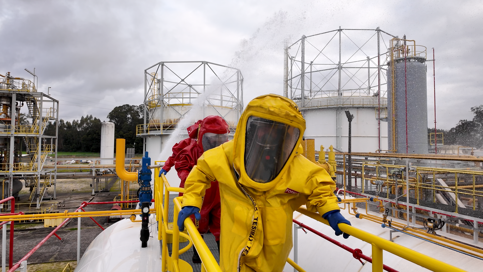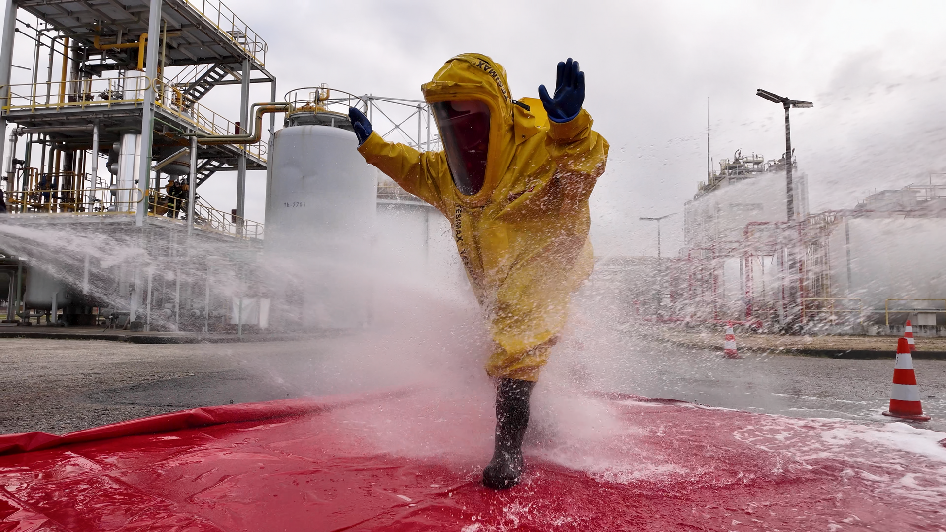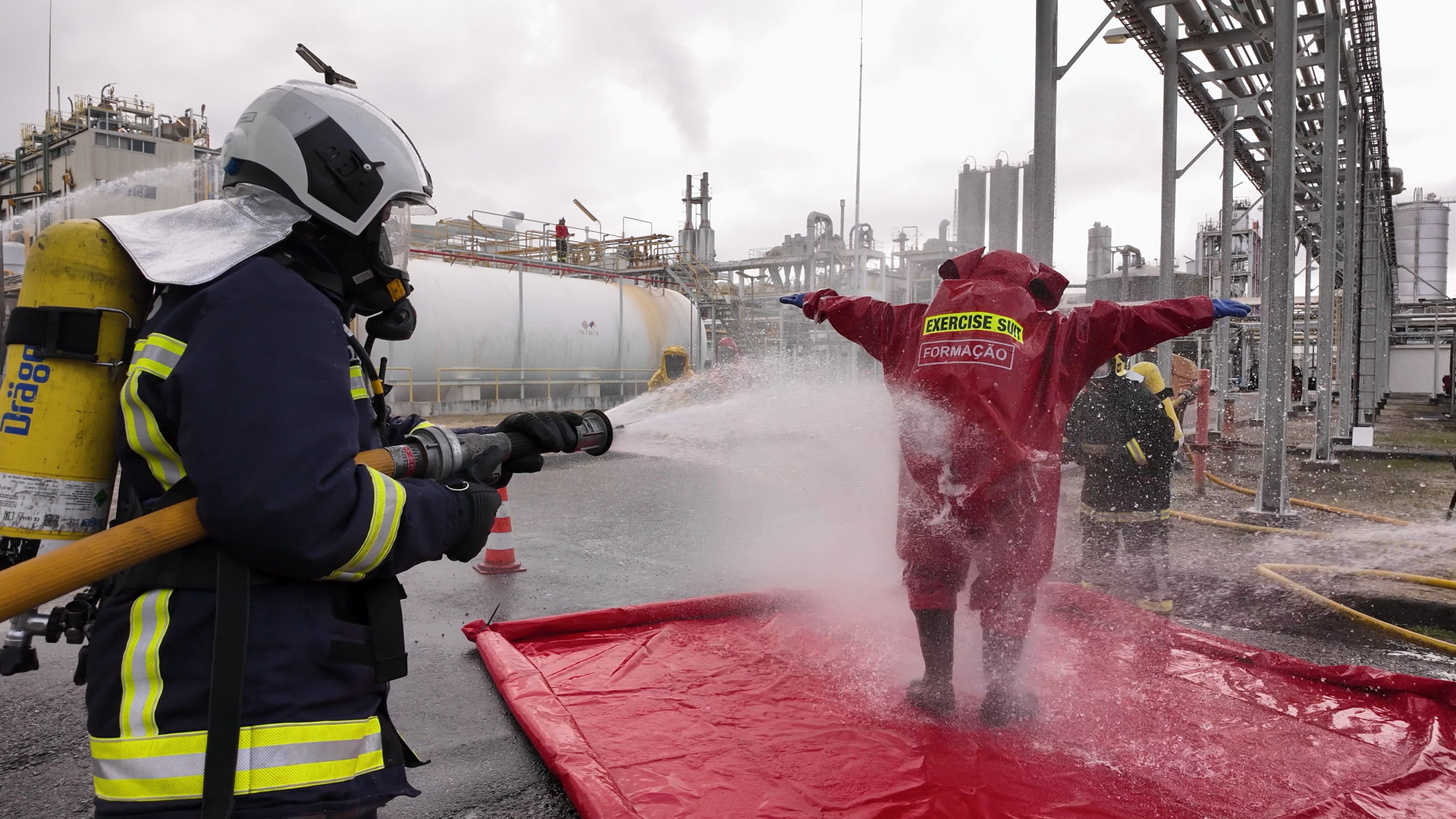 - Risco Químico: Operação com fatos de proteção química e combate a derrames de substâncias perigosas.